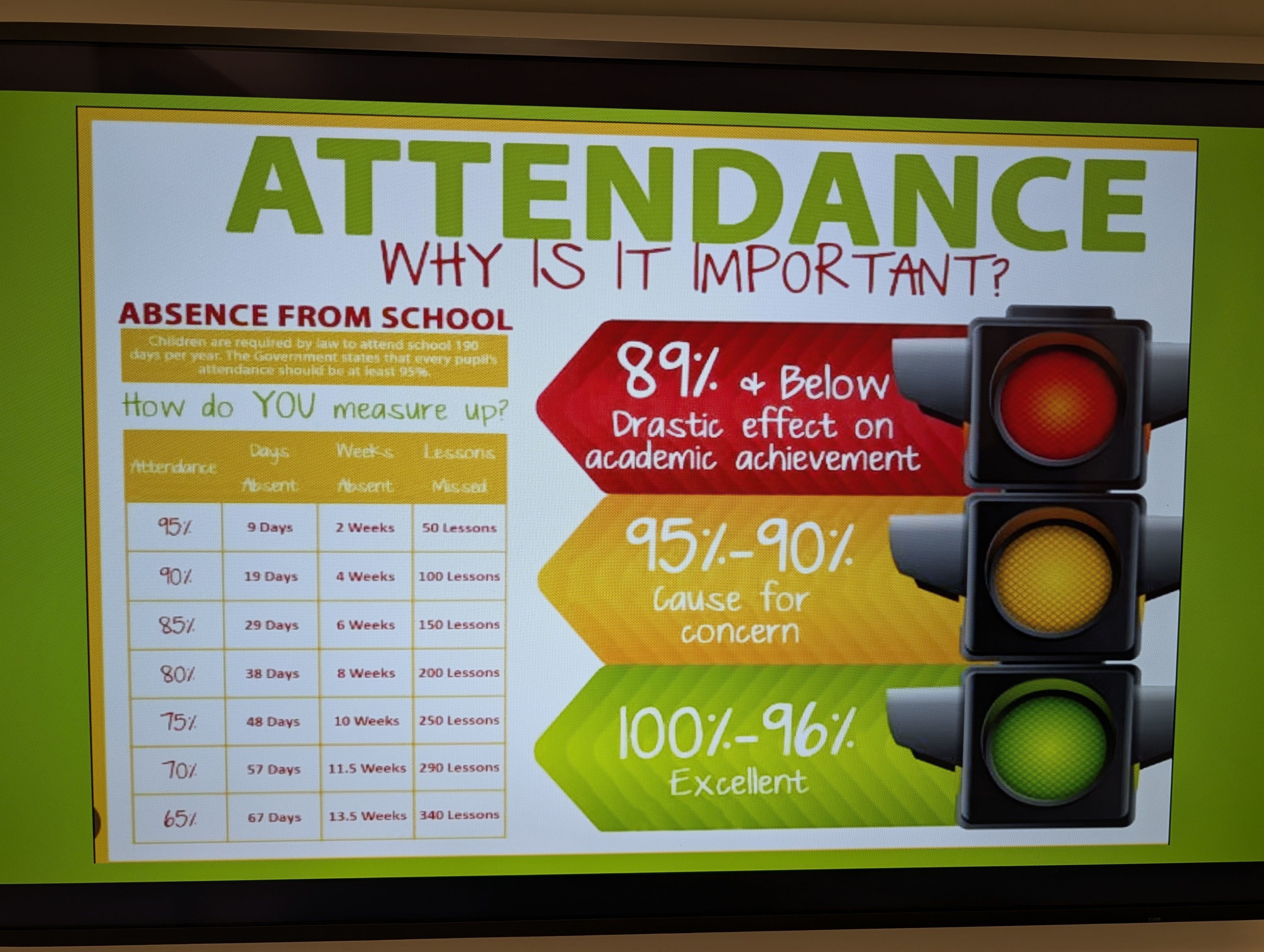 Like Genesee, Batis announces grade-level attendance to increase awareness.